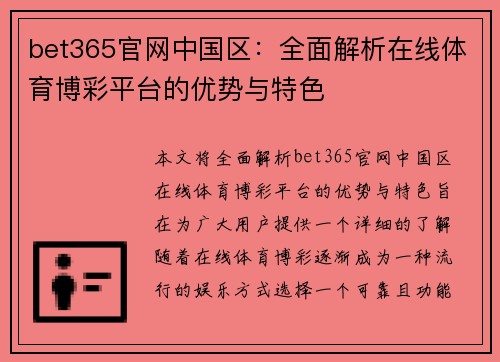 bet365官网中国区:全面解析在线体育博彩平台的优势与特色